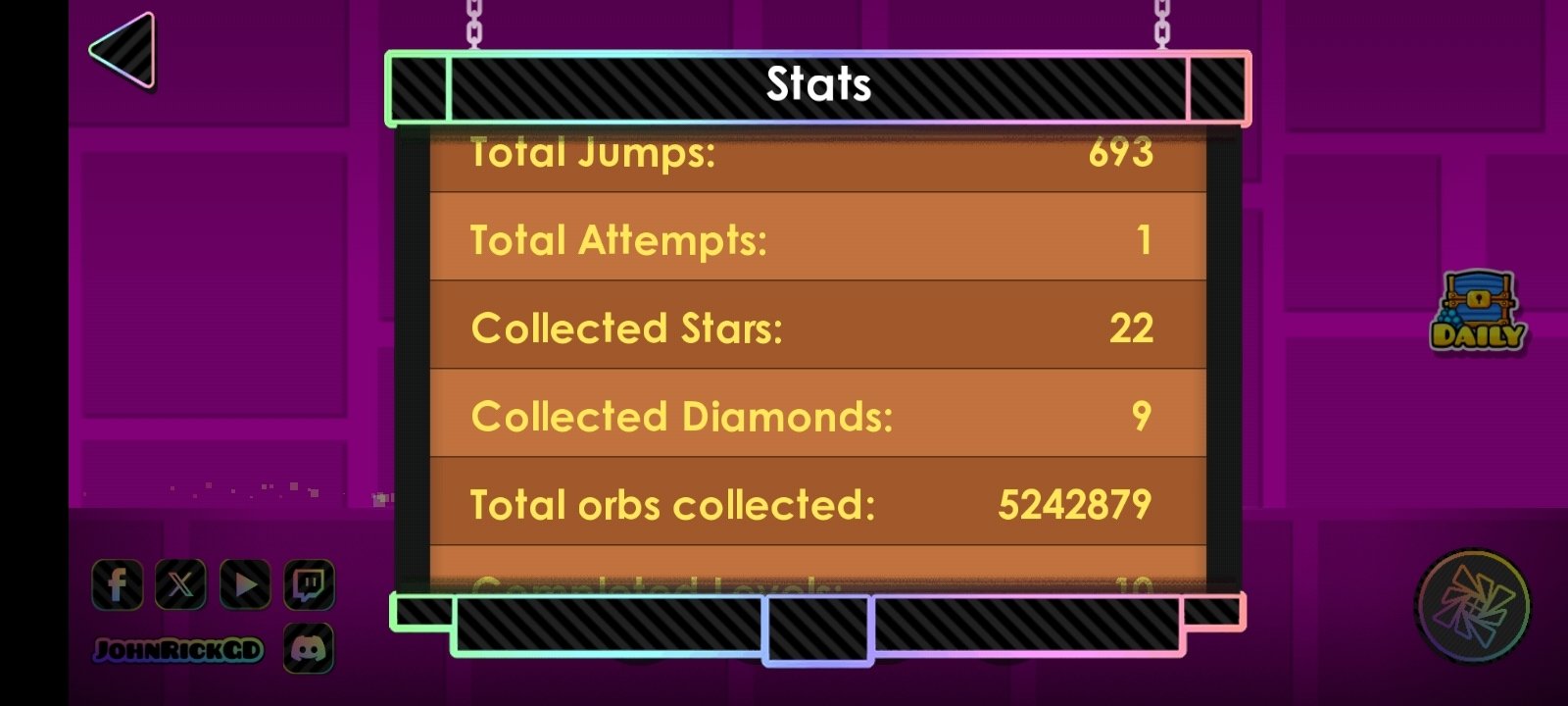 The RGDPS Android app introduces new levels, custom icons, and community-made events. Likewise, once you download RGDPS latest version APK, you can enjoy the latest features, technical improvements, and updated compatibility. This game is also compatible with RGDPS Geode, the MOD loader that facilitates the integration of additional content and more levels.